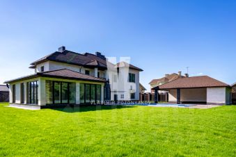 На первом этаже: кухня-столовая, гостиная, кабинет, гардеробная, с/у, бассейн, гараж на 2 м/м.
