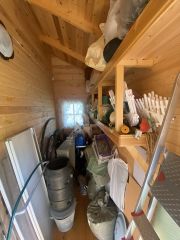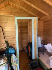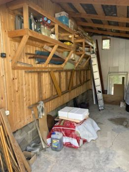 душевая кабина, канализация) и подсобное (стеллажи); крыша ондулин