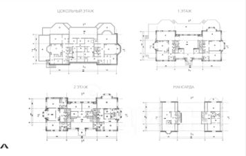 Первый этаж: холл, кабинет, кухня-столовая, зимний сад с выходом на террасу, гостиная, комната для занятий, игротека. кладовая, санузел, уборная, гардеробная, курительная, бильярдная, зал конференций.