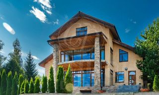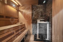 В доме выполнен дизайнерский ремонт. Грамотная планировка: 5 спален, кабинет, 4 с/у, просторная гостиная с камином, сауна с кедровой бочкой (купелью), кинотеатр с камином на 3 этаже, спортивный зал.