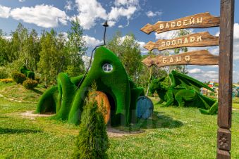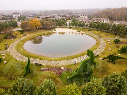 прогулочные зоны, русская баня, турецкий хаммам, финская парная, детский развлекательный центр, контактный зоопарк в окружении воды, ресторан и два банкетных зала (на 60 и 120 гостей), крупнейший в России Парк динозавров.