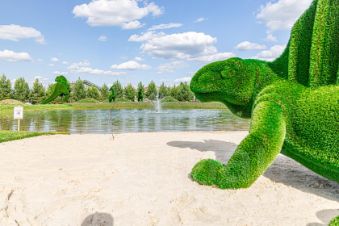 прогулочные зоны, русская баня, турецкий хаммам, финская парная, детский развлекательный центр, контактный зоопарк в окружении воды, ресторан и два банкетных зала (на 60 и 120 гостей), крупнейший в России Парк динозавров.