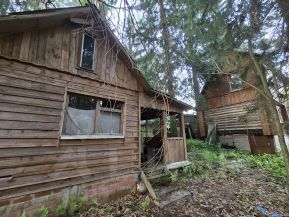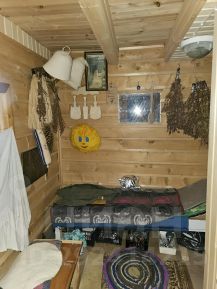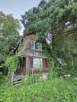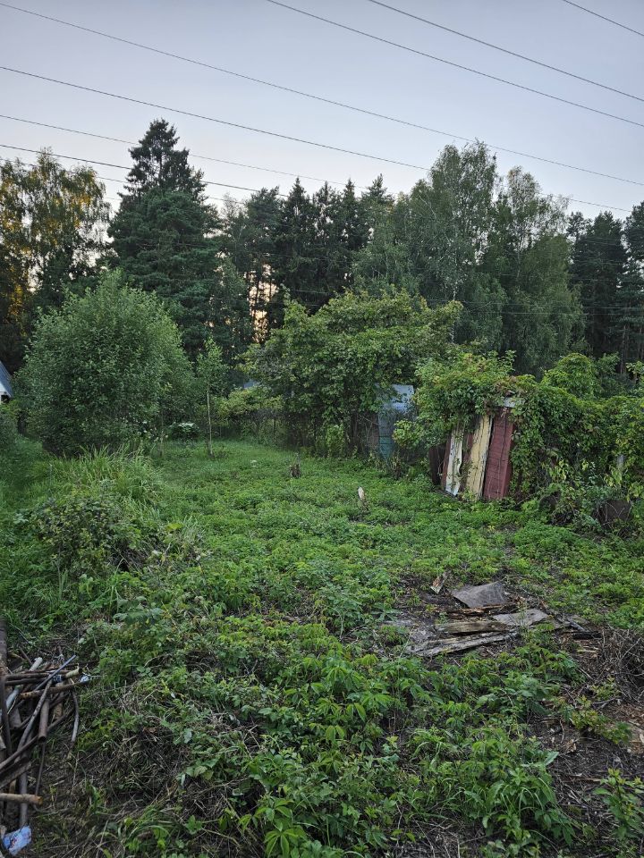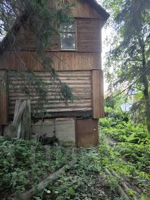 Прямоугольный участок в одной стороне растут сосны другая часть пустая под огород. Среди сосен дом сруб 7 на 6 двухэтажный. Есть баня 4 на 4. Доброжилательные соседи