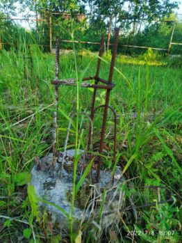 На участке расположен хоз блок, колодец, сваи под баню, огород.