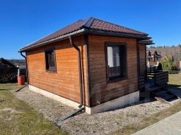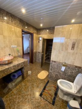 На участке в 12 соток выстроен двухуровневый переход бетонной стенкой примерно на две части по 6 соток, на верхней части расположен жилой домик, в котором имеется комната-зал для отдыха, сауна с финской электрической печкой и вынесенным блоком управления, обширный санузел-помывочная, скрытая качественная разводка труб, хорошая сантехника, электрический бойлер и нагреватели, прихожая. В зале широкие и высокие окна-стеклопакеты отличного качества, современна кухня с электрической плитой. Установлен современный септик. Есть возможность комфортного нахождения зимой.