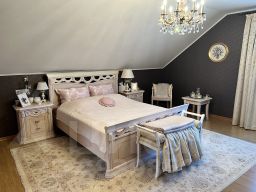 2 этаж: холл 2 этажа, 4 спальни (мастер-спальня с санузлом), общий санузел, балкон с кованым ограждением и маркизой.