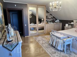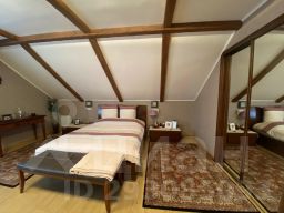 Дом имеет два этажа с удобной планировкой: перед входом большая терраса с мягким остеклением; 1 этаж: тамбур, холл 1 этажа, кабинет (можно переоборудовать в спальню), гардеробная, просторный санузел с душевой, объединенные гостиная с камином - столовая, кухня (полностью оборудованная современной техникой) с выходом на застекленную террасу, теплые полы, окна 1 этажа дома и бани закрываются автоматическими роллетами; подключена сигнализация.