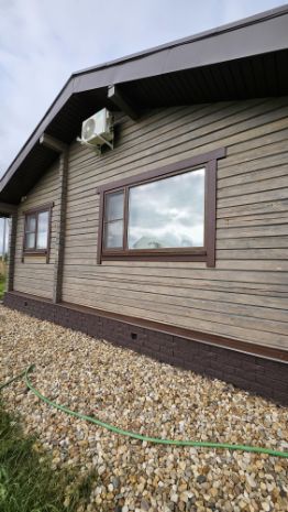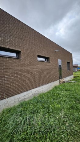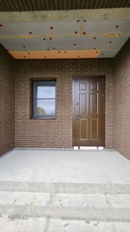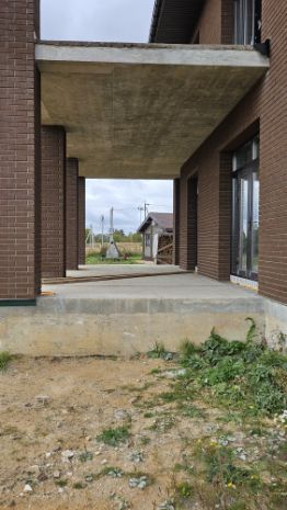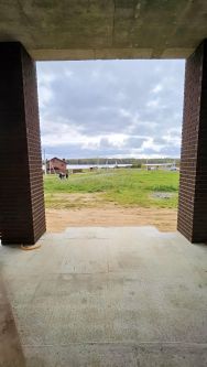 Основной дом. Конструктив сделан: фундамент свайный растверк+жб плита/перекрытия и колонны монолит/стены газоблок/облицованы керамическим кирпичем, крыша цементно-песчаная Braas. Выполнен полностью тёплый контур,окна,двери. Сделана штукатурка стен, проведена электрика, отопление,вода! Установлены батареи, инсталяции под унитазы,выведены весе розетки,выводы воды. Фото внутри большого дома пока не обновлены!