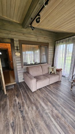 Отдельная дверь в жилую часть,где располагается прихожая,огромная гостинная 25 кв м с потрясающим видом на водохранилище, кухня,с/у, отдельная спальня с гардеробной. Также на участке построен основной дом 450кв.м в 2024г
