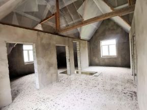 Жилой дом общей площадью ориентировочно 295 кв.м (в соответствии с выпиской егрн), в том числе площадь подвального этажа 90 кв.м. Планировка свободная. Возможна организация мансардного этажа, что приведёт к увеличению площади порядка на 60 кв. м. Подвальный этаж имеет ворота и железобетонный спуск для авто.
