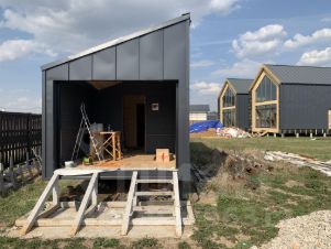 Участок оборудован септиком, проведено электричество, имеется бытовка (которая пригодна для временного проживания), возведен забор с автоматическими воротам, под автомобиль отсыпана площадка щебнем. На участок получены разрешения на застройку жилого дома, также уже установлены под него сваи (имеется проект дома, но возможно заменить на свой).