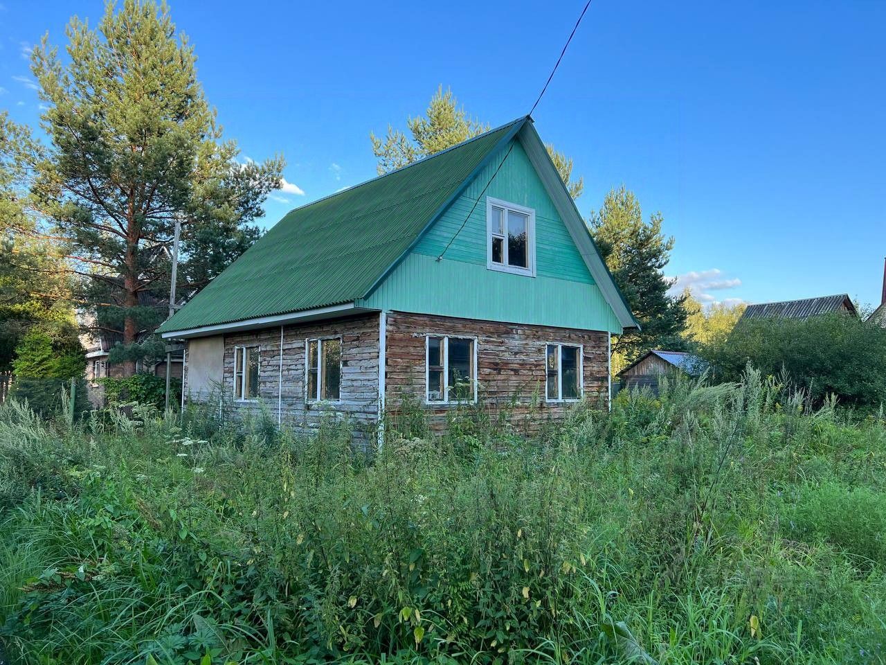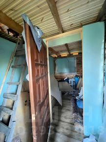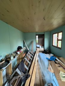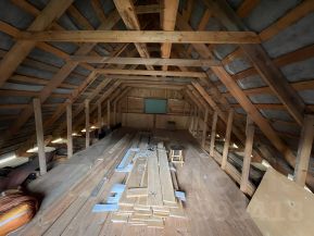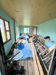 Также закуплен материал для потолка - фанера 1,5*1,5м, ламинат. Двойной стеклопакет, кроме второго этажа и ванной. Частично заведена проводка.