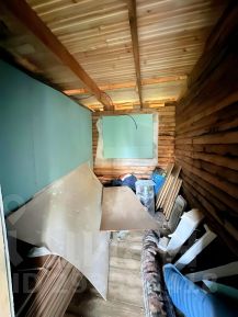 Хозблок - железный каркас, обит доской 20мм в 1 слой, крыша железная, без пола. Внутри железный прицеп (1,5*2 м), на ходу, имеется крепеж к автомобилю.