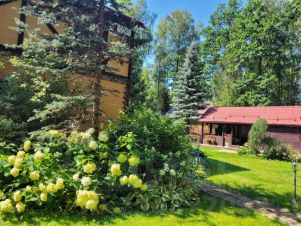 Вашему вниманию предлагается загородная усадьба, состоящая из основного дома, гостевого дома с баней и зоной барбекю, и гаража на лесном участке 20 соток в охраняемом поселке Дубровка, деревня Сазонки Дмитровского городского округа Московской области, 40 км от МКАДа по Дмитровскому шоссе.