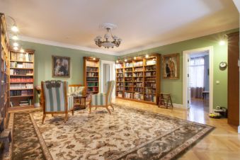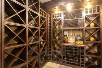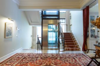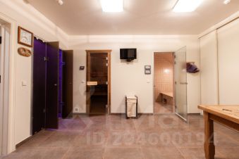 В отделке использованы материалы и оборудование премиальных европейских производителей. Планировкой предусмотрено 6 спален, каждая с гардеробной комнатой, 7 санузлов, финская и турецкая бани, домашний кинотеатр, винный и продуктовый погреба, спортивный зал, оранжерея.