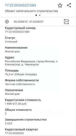 Дом 6х8м 2 этажа на 23,5 сотках в деревне Чернецкое, поселение Клёновское, ТиНАО, прописка Москва, дороги асфальт. Земли населенных пунктов, ИЖС.
