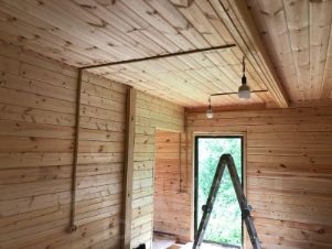 В доме сделаны первичные розетки и свет. Можно жить и заниматься отделкой.