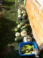 В огороде растут: крыжовник, красная смородина, жимолость, астры, черная смородина, боярышник, картошка, помидоры, огурцы, зелень, редис, тыква, кабачки, перец, зелёный горошек, фасоль, кукуруза, баклажаны, клубника, морковь, котовник, астры, тимьян, капуста разная, розы, гортензия и др.