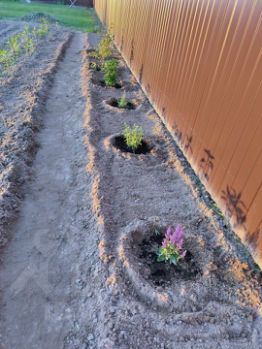 Деревья: яблоня, груша, слива, ёлочка. Хорошо растет топинамбур, тыква.