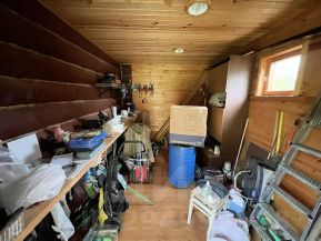 Фундамент ленточный, заглубление 1.8 метра, ширина ленты 40 см., первый этаж высокий. Кровля - металлическая черепица. Бревно в диаметре от 25 до 38 см. В доме 2 полноценных этажа + чердак.