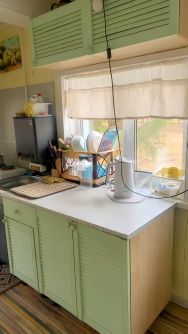 Дом мебелирован: кухонный гарнитур, плита (2 эл. конфорки, небольшой духовой шкаф), холодильник, микроволновка, большой раскладной диван, три вместительные тумбочки, столы, стулья.