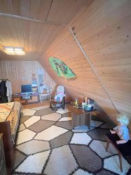 Дом после капитального ремонта, утепленные полы, пластиковые окна. В доме на первом этаже две комнаты и терраса. На втором мансардном этаже, большая комната поделенная на две зоны.