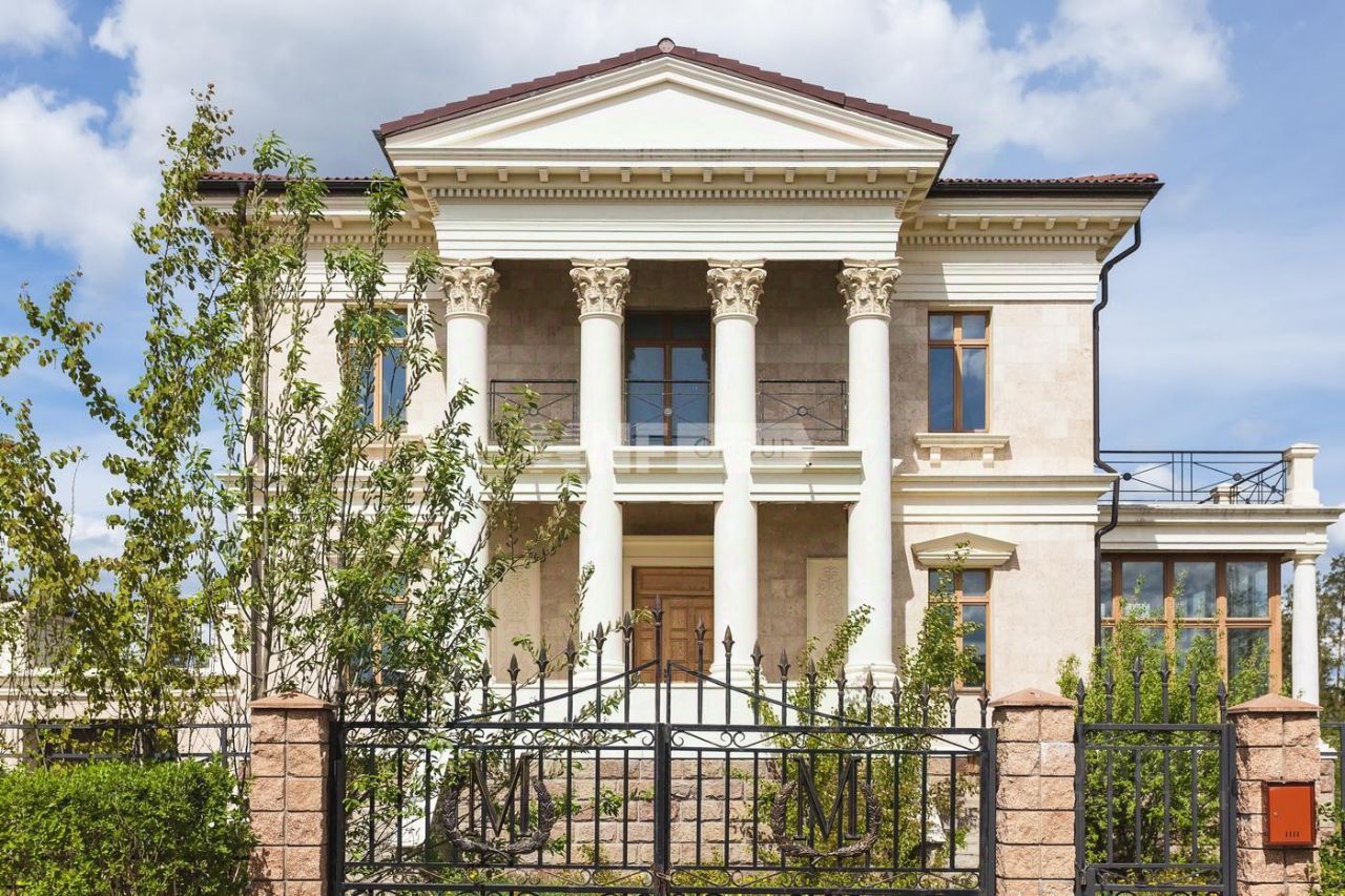 Дом общей площадью 680 м² выполнен в неоклассическом стиле и включает в себя все, что необходимо для комфортной жизни и отдыха. В цоколе расположены гараж на 4 машины, помещение для отдыха, сауна, бильярдная и даже винный погреб. На первом этаже - просторная кухня, гостиная-столовая с домашним кинотеатром, зимний сад и терраса. На втором этаже - 4 спальни, каждая из которых имеет свою ванную комнату и выход на террасу, откуда открывается великолепный вид на лес и поселок.