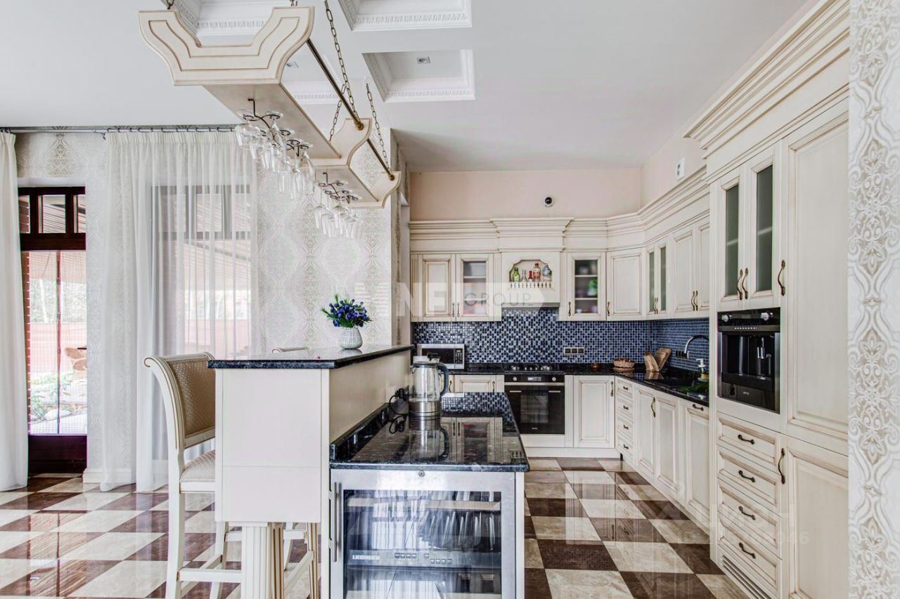 Дом выполнен в светлых и пастельных тонах с использованием дорогих и натуральных материалов. Внутренняя отделка выполнена из экологически чистых материалов, включая американские бумажные обои и венецианскую штукатурку. Полы покрыты испанским и итальянским керамогранитом с водяным подогревом и натуральным дубовым паркетом.