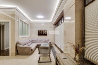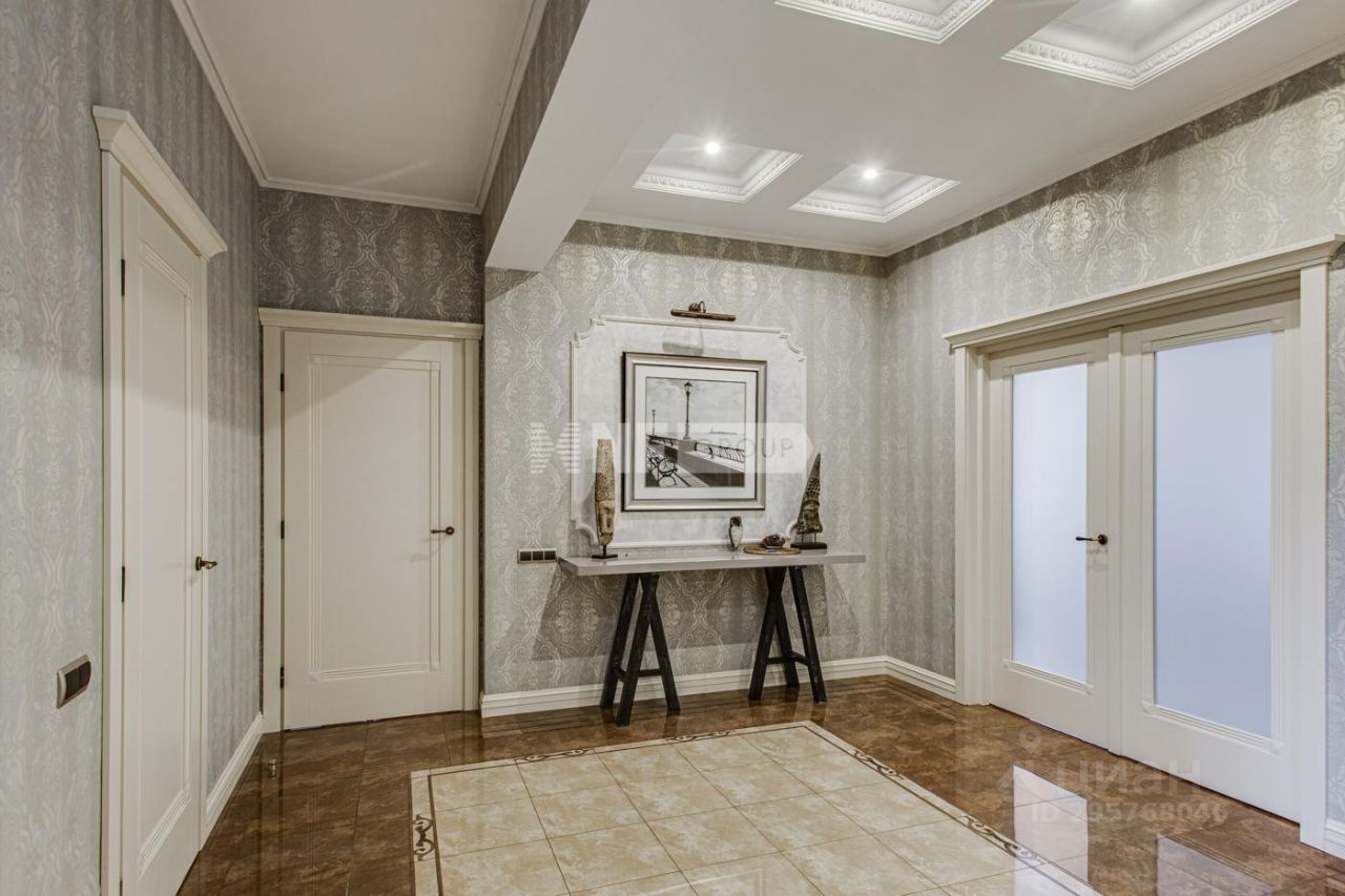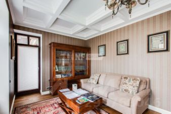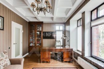 На первом этаже расположены просторная кухня-столовая с выходом на крытую веранду, гостиная с камином и SPA-зона с джакузи, сауной и хамамом. На втором этаже находятся холл-коридор с зоной библиотеки, хозяйская спальня с гардеробной и санузлом, кабинет и две дополнительные спальни. Третий этаж представляет собой помещение свободного назначения площадью 123 кв.м.