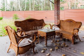 Участок площадью 23 сотки украшен более чем 30 взрослыми березами и 100 декоративными кустарниками. На территории есть две зоны каменного сада, патио с диваном-качалкой и французский огород.
