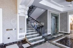 - В доме имеются две лестницы и лифт для удобства перемещения по уровням.