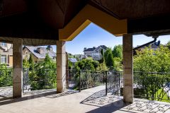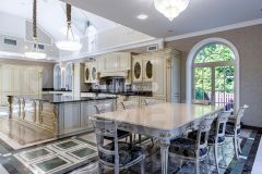 - Первый и второй этажи включают двухсветные гостиные с каминами, кухню-столовую с выходом на открытую террасу, библиотеку, кабинет и комнаты с собственными санузлами и гардеробными.
