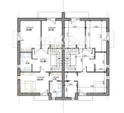 На первом этаже по плану расположится гостиная, столовая, кухня, прихожая, постирочная, с/у, кладовая. На втором этаже 2 спальни, спальня с гардеробной и с/у, холл и с/у.