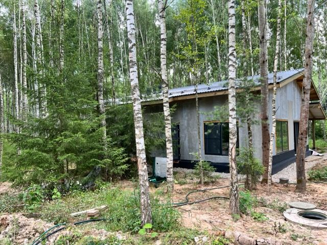 Коммуникации: Вода - скважина 65 метров c пластиковым кессоном, имеются два комплекта документов. Заведена в дом. Сделана коллекторная разводка до оконечного оборудования. Подключен бойлер косвенного нагрева 150 литров; Электричество - два наружных распределительных щитка, по периметру и непосредственно на самом участке, всего 15 КВТ. Заведено в дом, подключено к временному щитку. Кабель NYM разведен по всему дому до оконечного оборудования; Отопление основное отопление теплый пол, установлен пеллетный котел BIODOM. Коллекторная разводка на всей площади дома. На случай под каждым окном подготовлен силовой кабель для конвекторов. Резервный электрокотел 7 КВТ. Смонтирован в систему. Водоотведение - трубы водоотведения смонтированы в УШП фундаменте, выведены в биостанцию. По периметру дома организована также дренажная система с 4-мя инспекционными колодцами. Все водоотведение сводится к основному отстойному колодцу в котором смонтирован дренажный насос на случай переполнения; Вентиляция установлены 3 выходных грибка. Все в рабочем состоянии
