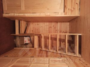 Второй этаж отделан вагонкой, уложена обрезная доска на пол, но не выполнена покраска и разводка электричества.