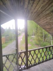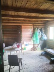 Два сруба в разной степени готовности. Большой дом разбор. Участок 12 соток, ровной прямоугольной формы. Свой выход в лес. Септик подведен ко всем домам, скважина, летняя вода.