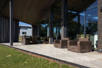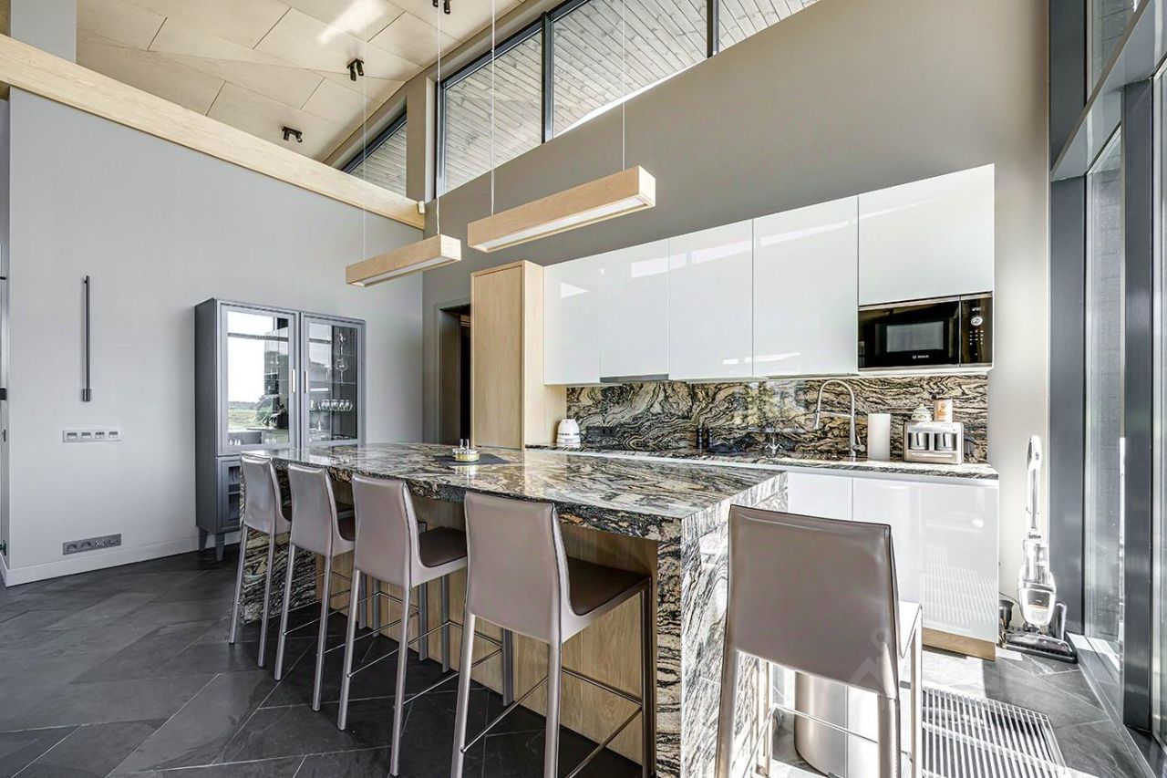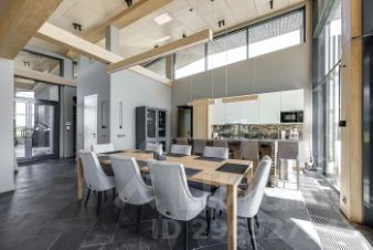Высокие потолки, натуральное дерево в отделке, панорамные окна и открытая веранда создают впечатление полного единения с природой: перед Вами открывается вид на бескрайний ландшафт полей с перелесками. Сидя на своей веранде можно наслаждаться игрой гольфистов и наблюдать за финишным подходом к 18-й лунке.