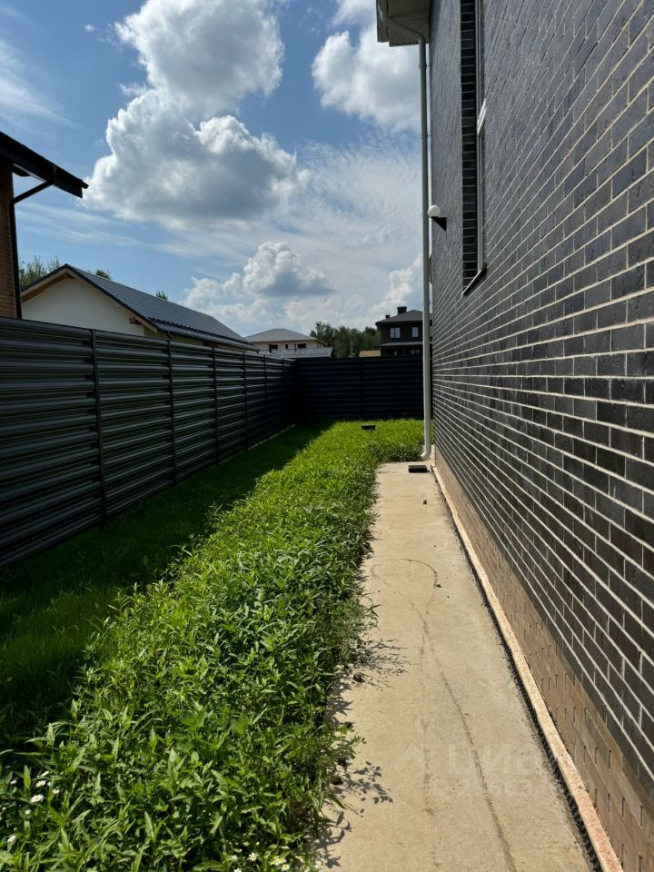 Современный металический забор с автоматическими выдвижными воротами. Дренаж по всему периметру участка. Утеплен контур цоколя и отмостки дома пеноплексом. Залиты входные группы и отмостка по периметру дома высококачественным бетоном.