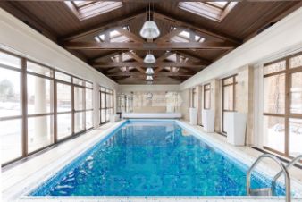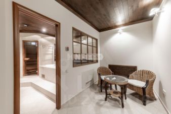 Участок площадью 30 соток включает в себя отдельный SPA-комплекс 382 кв.м. с сауной, душевой, большим профессиональным бассейном и зоной отдыха с кухней, а также блок для персонала и дополнительный гараж.