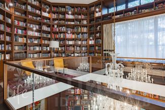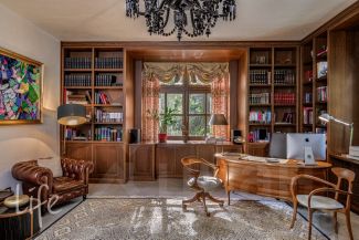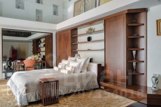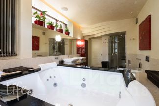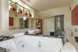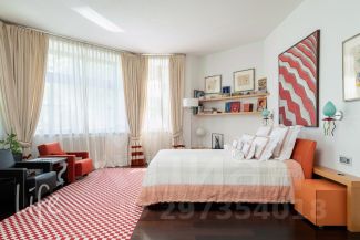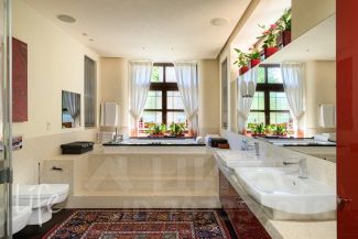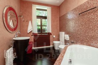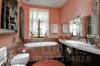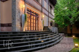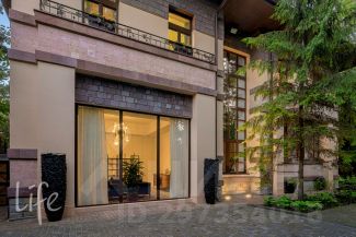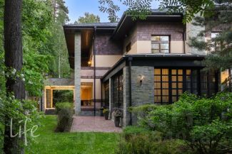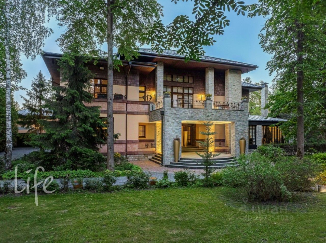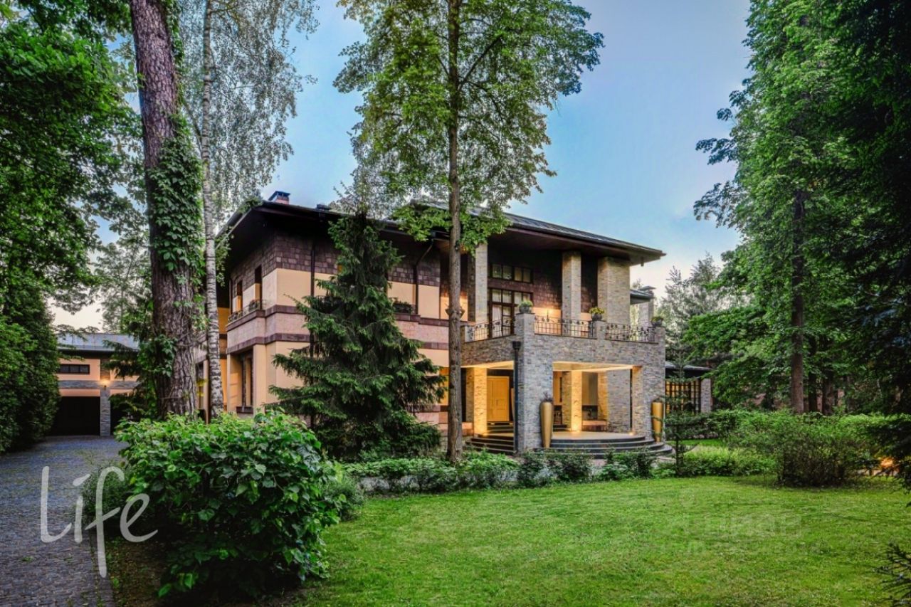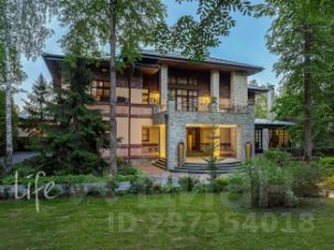 Лот 57345. Дом под ключ 847 кв.м. на участке 56.00 соток. Количество спален: 4. Переделкино, Минское шоссе, 6 км от МКАД. Красивый лесной участок с ландшафтным дизайном, каскад прудов с рыбками, ручей, прогулочные дорожки и уличное освещение. Гостевая парковка и отдельно стоящий гараж на две машины. Гостевой дом из бруса (Контио) 137 кв.м.- гостиная с вторым светом, кухней, спальня с с/у, гостевой с/у, душевая, русская баня, хаммам, купель на улице. Отдельно есть дом для персонала с двумя спальнями, кухней и с/у. Отдельный хозблок. Современный дом с продуманной планировкой в стиле органической архитектуры Ллойда Райта, изысканные интерьеры и архитектура, строительство и отделка от лучших европейских мастеров. Планировка дома: Цоколь: спортзал, с/у, домашний кинотеатр, бильярдная, бар, винный погреб, постирочная, котельная, лифт для продуктов на первый этаж. 1 этаж: холл, гардеробная, кухня столовая с панорамным остеклением, мангал, гостиная, кабинет, каминный зал, библиотека, оранжерея. 2 этаж: спальня с гардеробной и с/у, спальня с с/у, детская спальня с с/у и гардеробной, мастер спальня с с/у и гардеробной террасой.