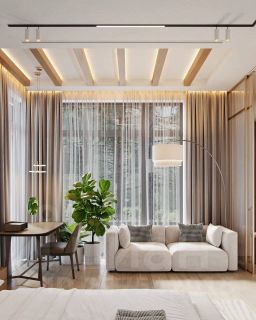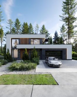 Этаж 2: 3 детские спальни с панорамным остеклением, с двух из которых, предусмотрен выход на большие террасы, санузел, постирочная комната, а так же четвёртая - просторная мастер-спальня, с гардеробной комнатой, панорамным остеклением и видом на лес.