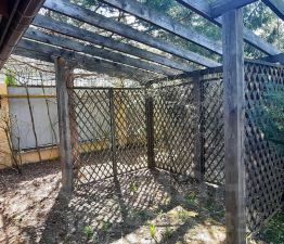 На участке в 12 соток построена беседка на заднем дворе, участок правильной прямоугольной формы.