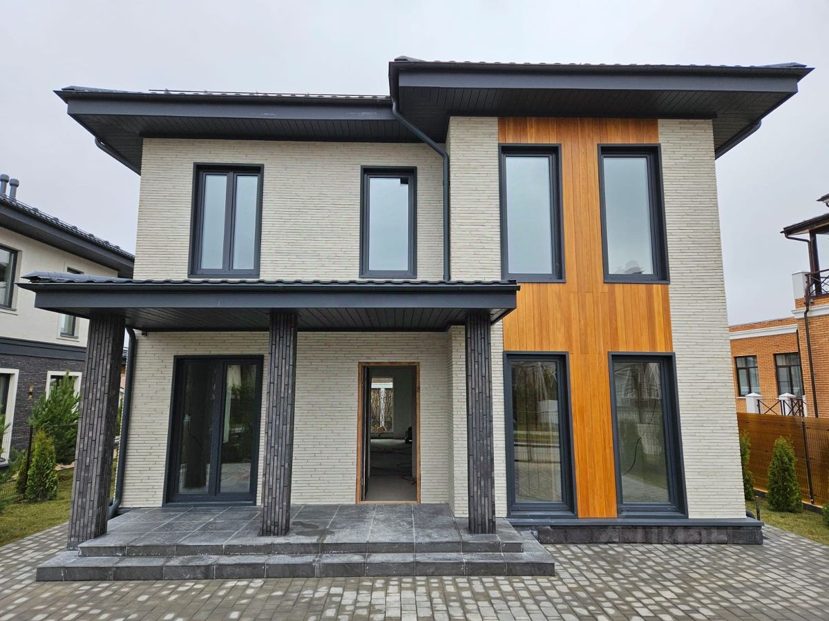 Фасад дома выполнен из плитки ручной формовки Tegla и лиственницы, что придает ему уникальный внешний вид. Он выделится среди других домов и станет прекрасным дополнением к окружающей природе.