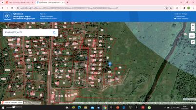 Небольшой выровненный участок прямоугольной формы для постройки жилого или дачного дома. По адресу можно прописаться. На участке растут несколько деревьев.