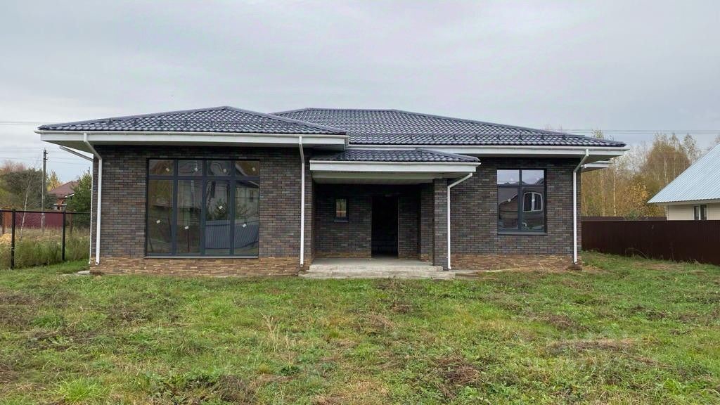 По проекту площадь дома составляет 165,64 м². Это 1-этажное строение в современном стиле. Фундамент - монолитная ж/б плита; стены- г/с блок (бонолит), облицованные кирпичом Вraer кладка Limited Риф1 NF, кладочный раствор Perfekta (Перфекта) Линкер Стандарт графитовый; кровля - Grand Line,окна - Rehau Grazio, фурнитура SIEGENIA Titan. Все материалы, используемые для строительства