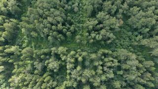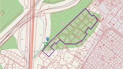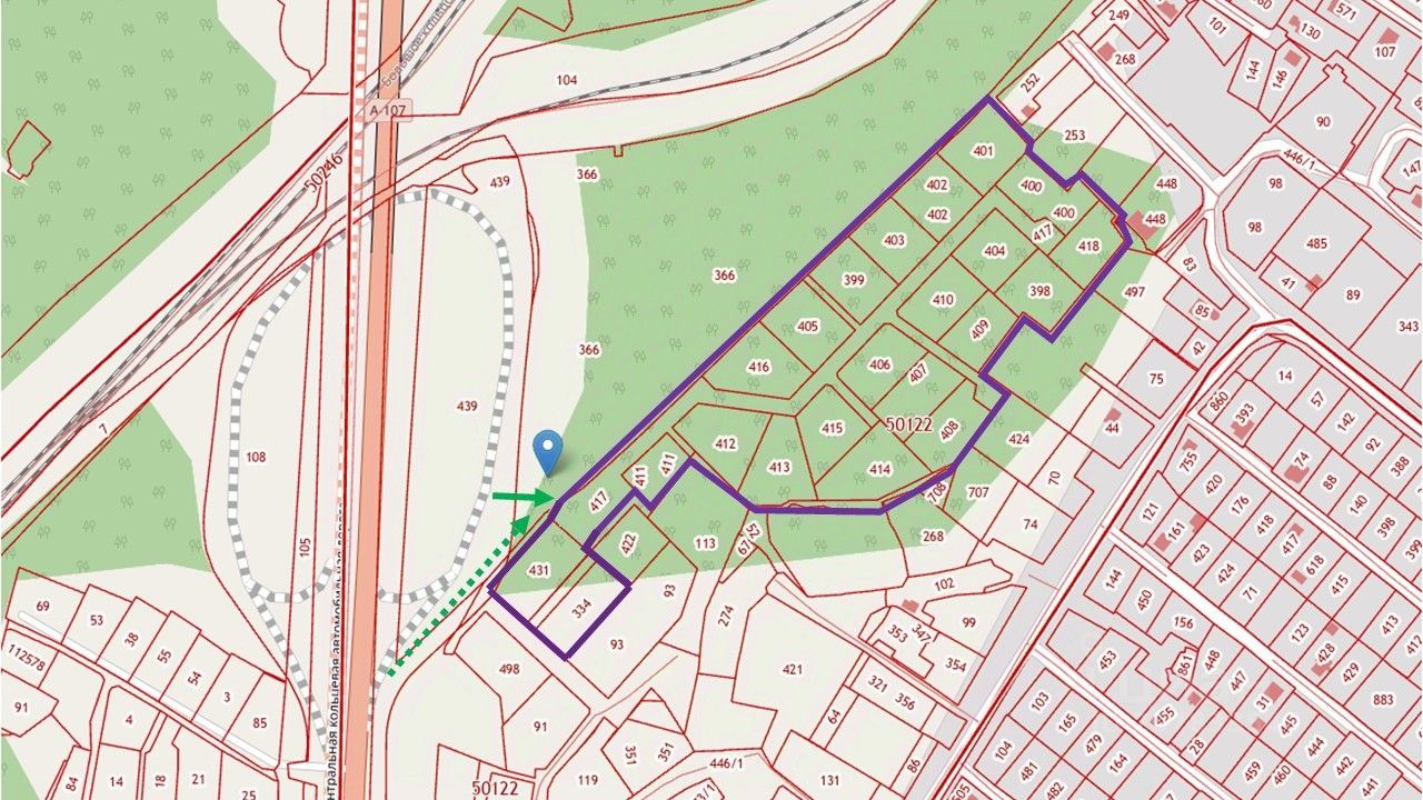 Большой участок с лесными деревьями, смешанный лес. От СНТ и ж/д отделен зеленой зоной.