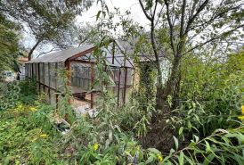 Участок 8,5 соток: баня (вода подведена), беседка, две теплицы, дровник с дровами, посажены фруктовые деревья, кусты, цветы, есть грядки, бетонные дорожки. Участок ровный, огорожен забором из металлопрофиля и сетки, граничит с лесом.