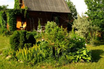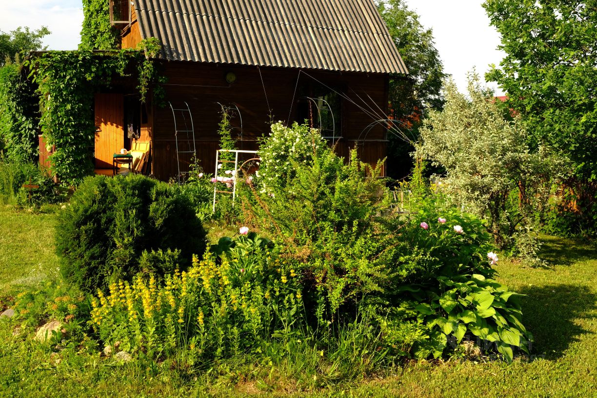 Участок сухой, один из лучших в СНТ. Никаких затоплений по весне не случается, т. к. расположен на возвышенности. На участке газон, альпийская горка, декоративные кусты, цветы: пионы и клематисы, две замечательные большие пушистые ели, дуб, две сосны, яблони, сливы, айва, облепиха, смородина, малина + небольшой огород и шикарный лимонник.