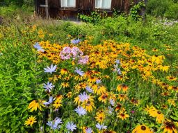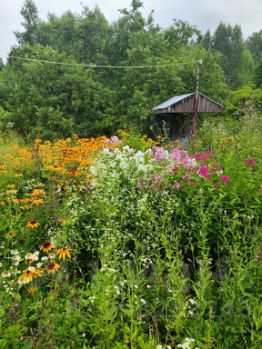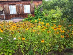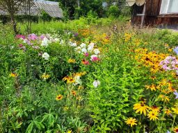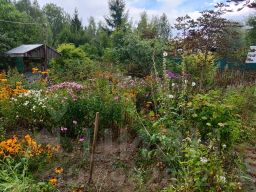 Посажены сезонные цветы многолетии что дает постоянный цветник от мая до октября сменяя друг друга по месяцам.