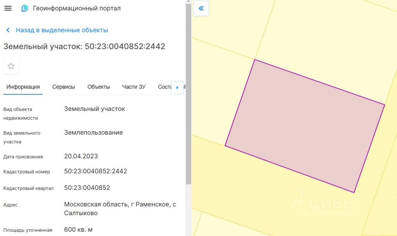 В продаже участок 6 соток, кадастровый номер 50:23:0040852:2442